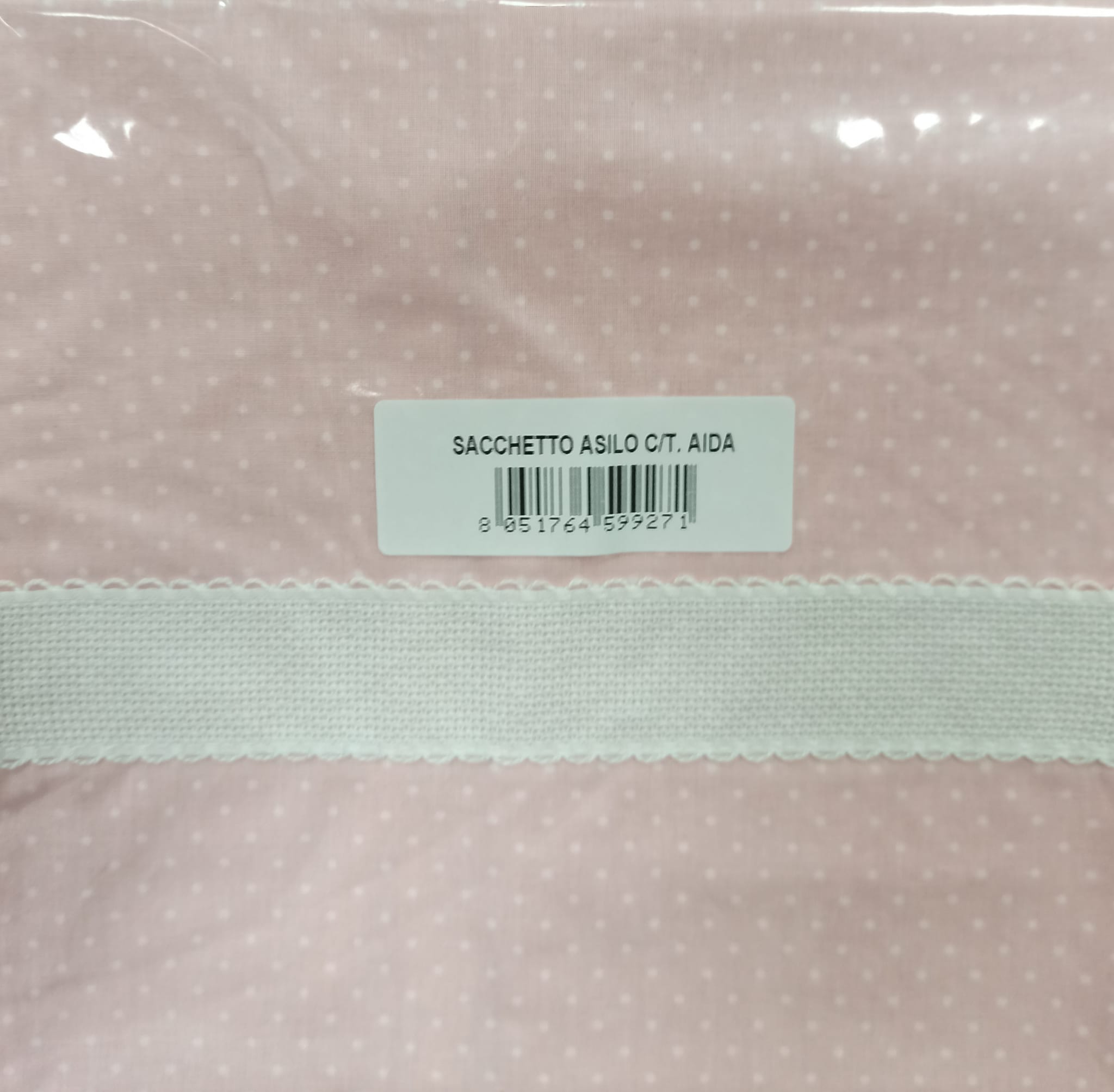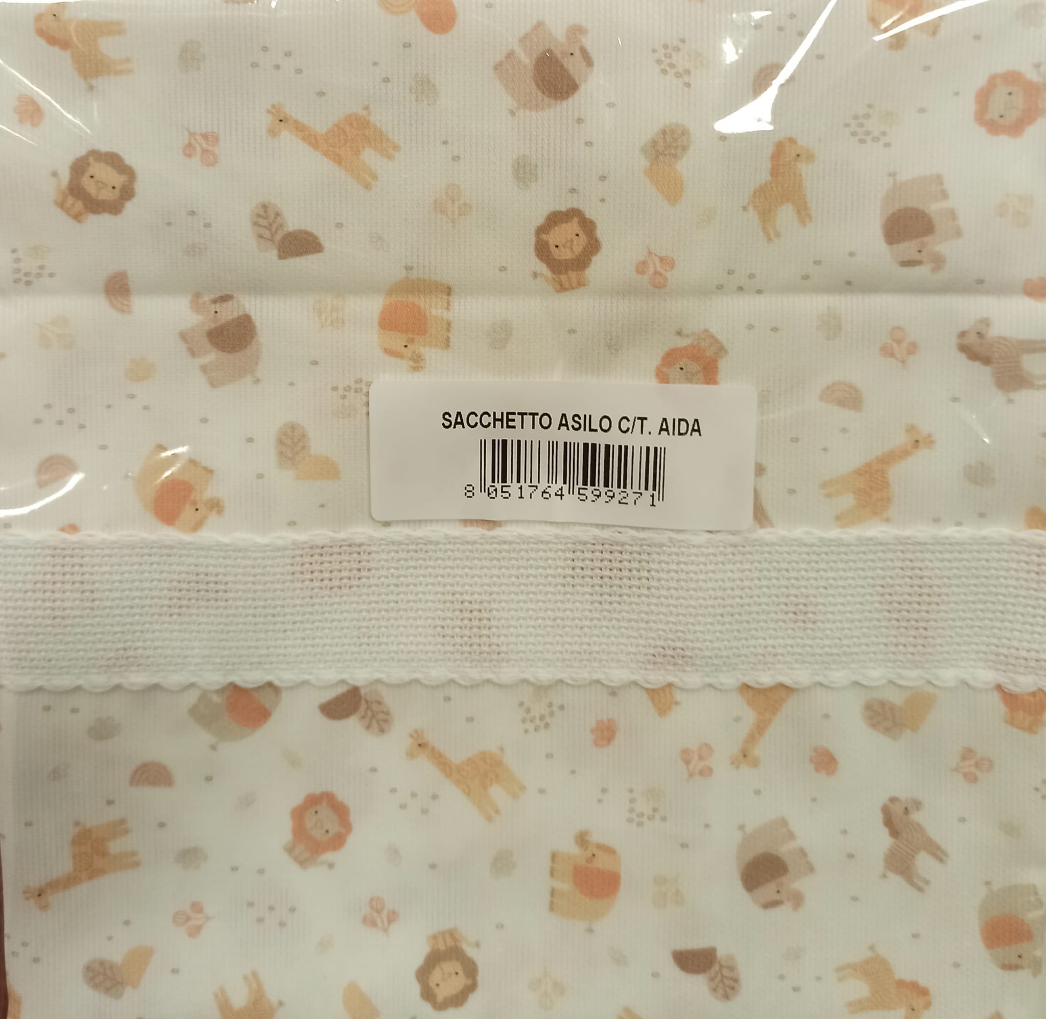 COCCOLE SACCHETTO ASILO CON TELA AIDA PER RICAMO NOME