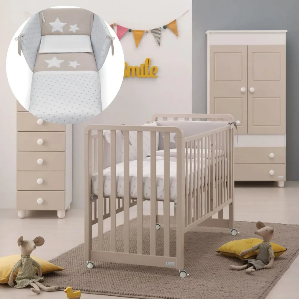 • Corredino tessile Glam: Set 3 pezzi composto da piumone, paracolpi, federa cuscino Luce