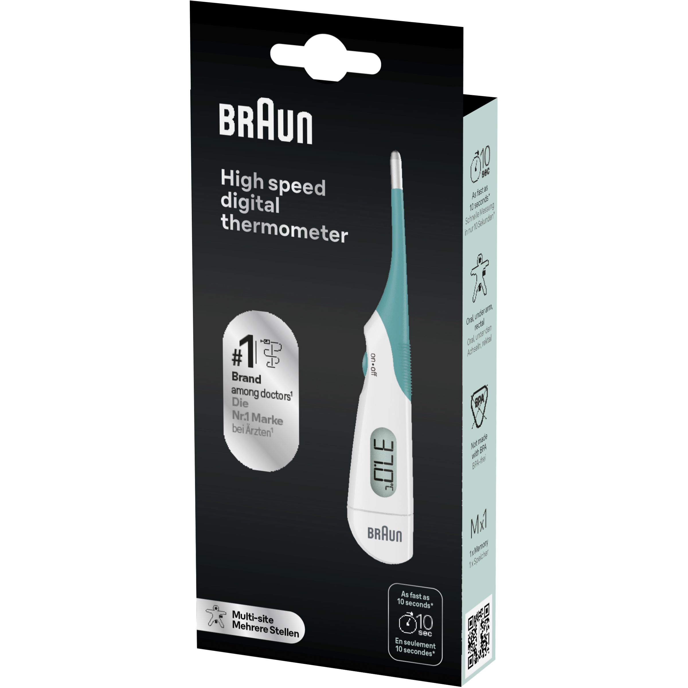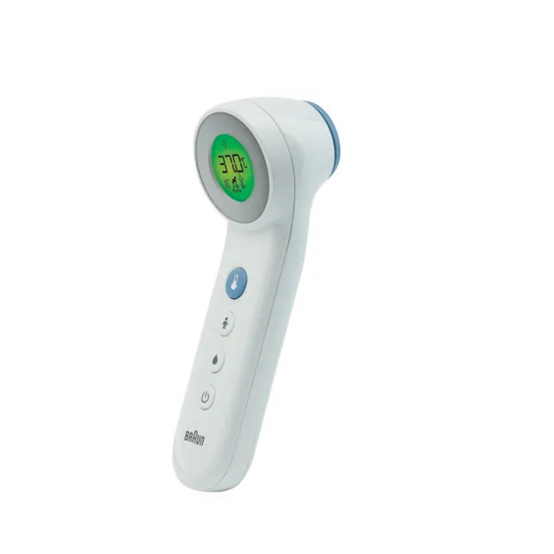 Braun Termometro Touch BNT400 combina la facilità di utilizzo del metodo frontale con contatto e senza contatto con l’esclusiva tecnologia Age Precision Braun per aiutare i genitori ad orientarsi nella misurazione della temperatura. Doppia tecnologia: misurazione sulla fronte con sistema senza contatto e con contatto.