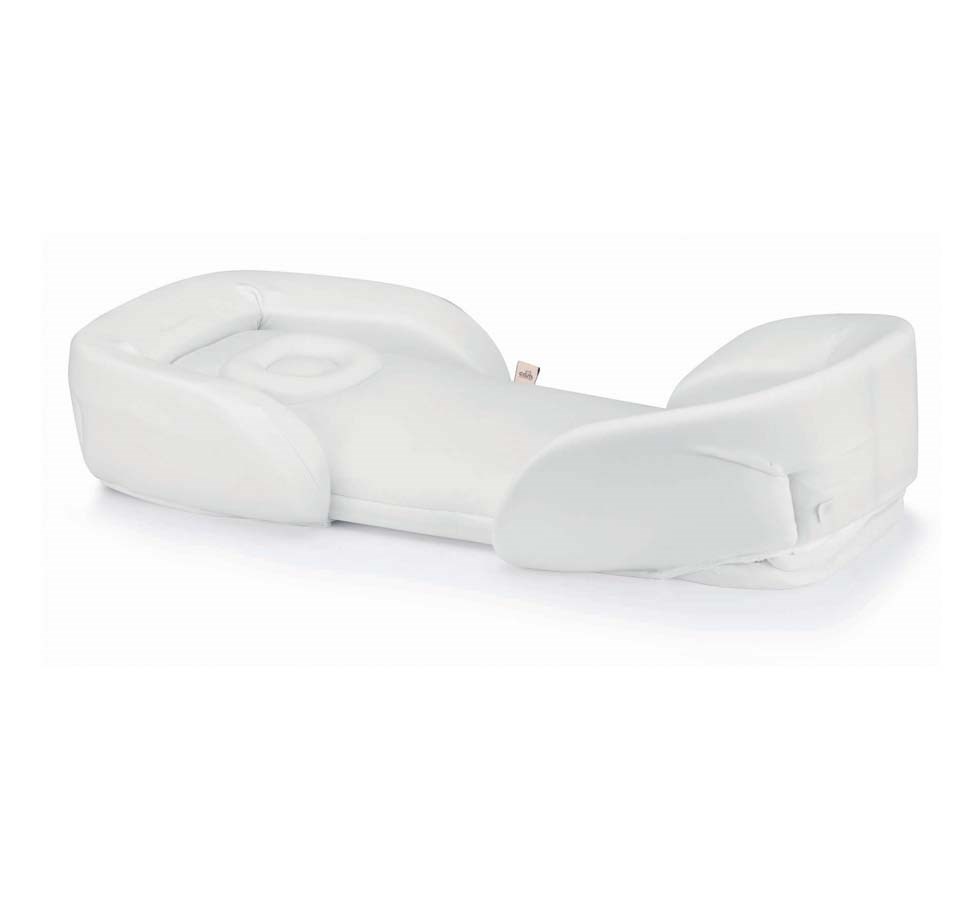 - E’ incluso anche l’elemento con doppia inclinazione e possibilità di utilizzo: sotto la testa del neonato per la funzione antirigurgito e/o sotto le gambe per stimolare la circolazione e contenere il neonato