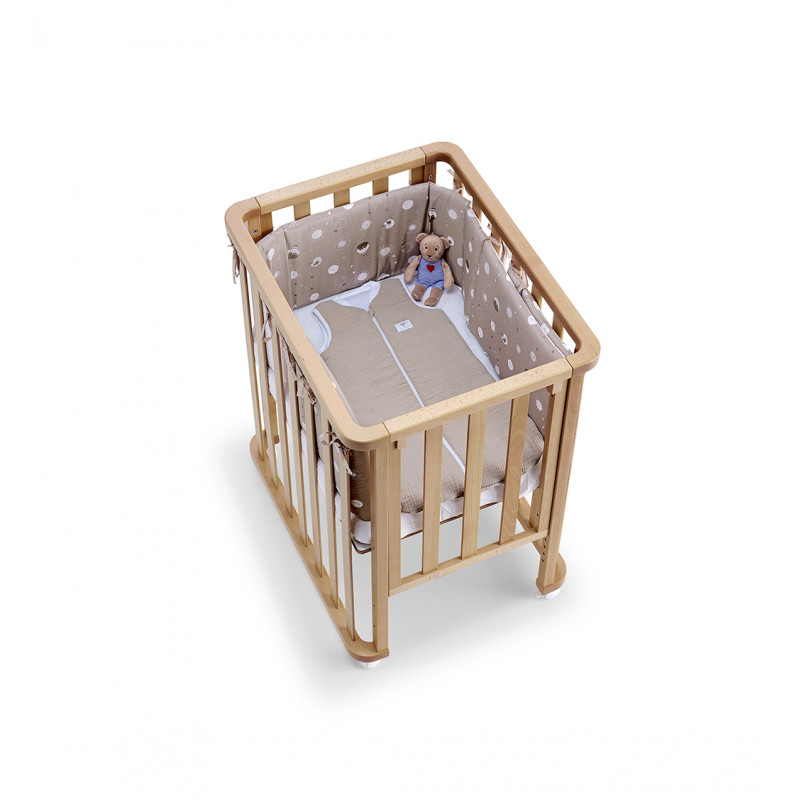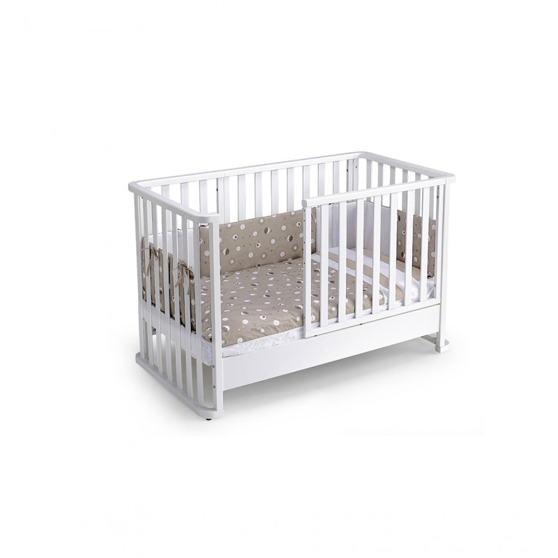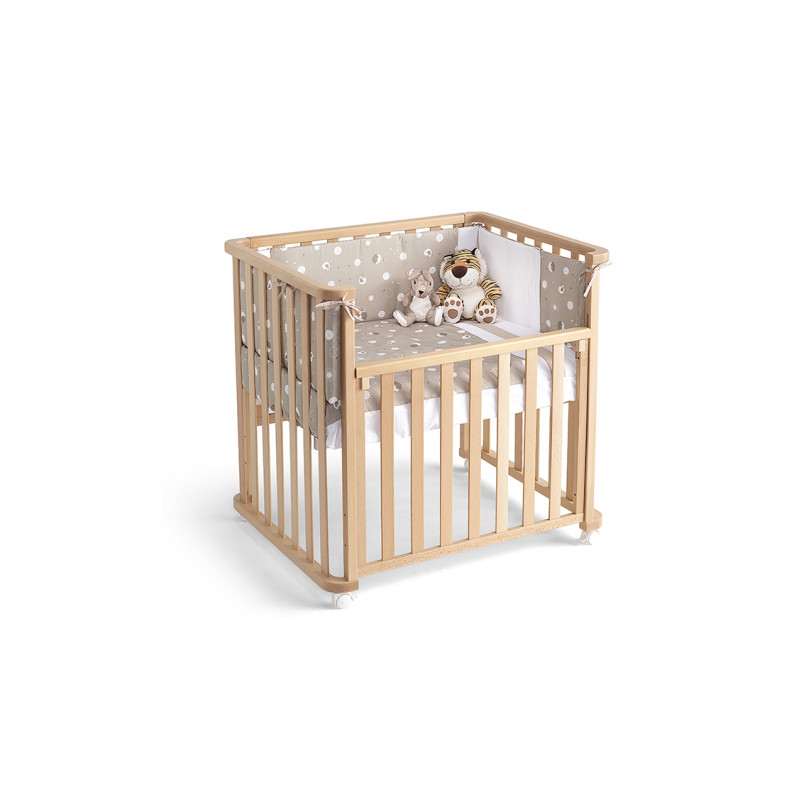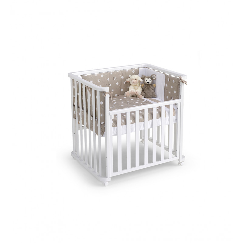 Possibilità di lasciare un lato del lettino con una spondina parzialmente aperta cosi da far salire e scendere il bimbo in autonomia.