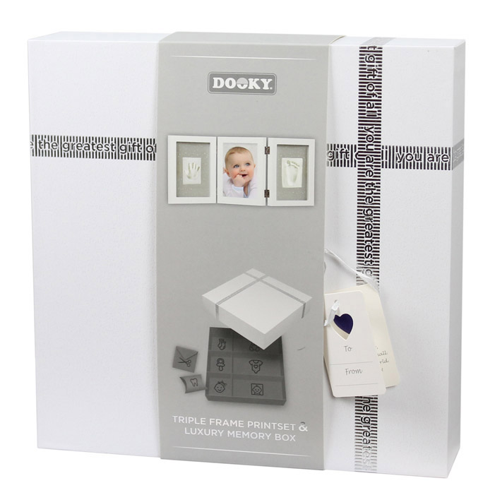 Questo set regalo con cornice con due impronte e memory box creerà un prezioso ricordo che dura nel tempo.