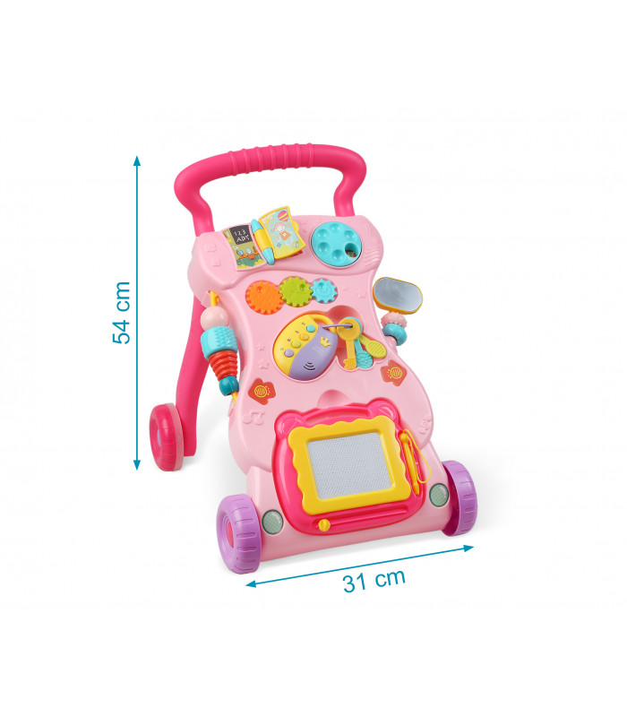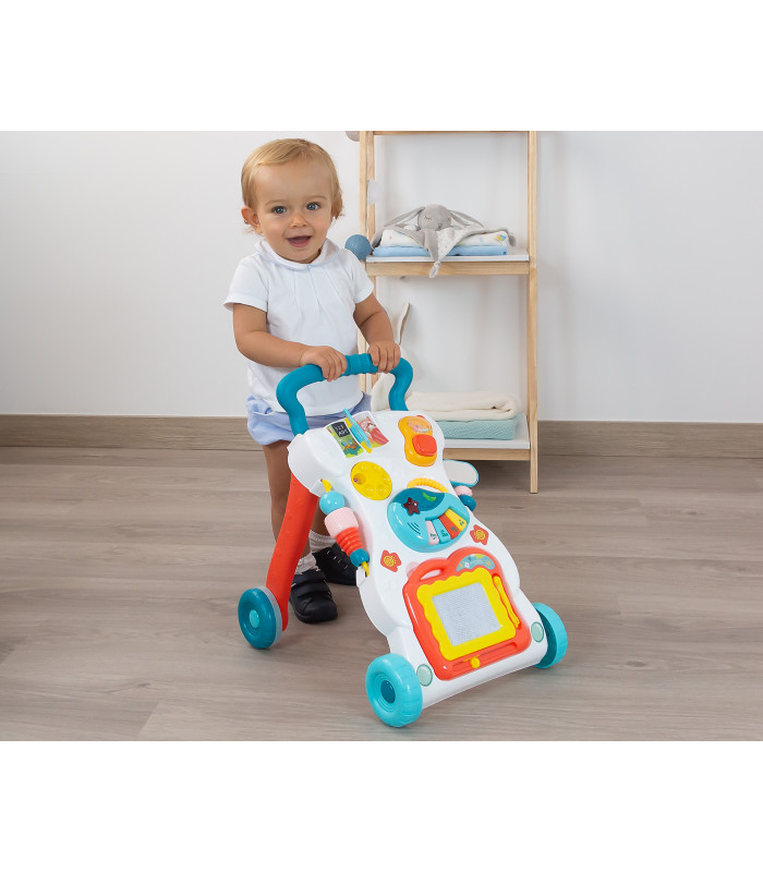 ideale per i primi passi. Studiato per essere alla corretta altezza, aiuta il bambino a sentirsi più sicuro nell’affrontare i primi passi. Il walker ha 14 melodie e vari e attività con cui il bambino potrà divertirsi nella pausa tra una camminata e l’altra.