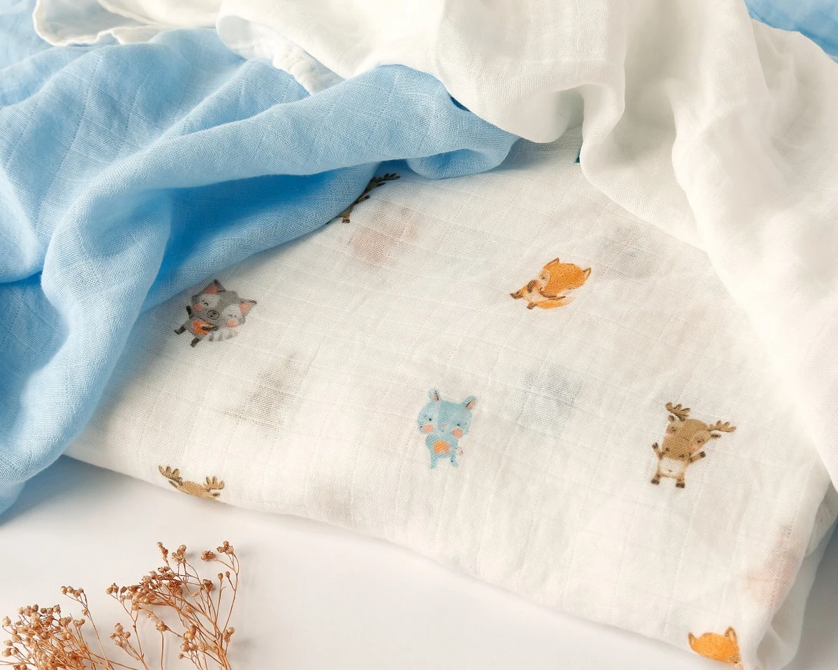 - Il set comprende tre mussoline dimensione 70 x 70 centimetri.