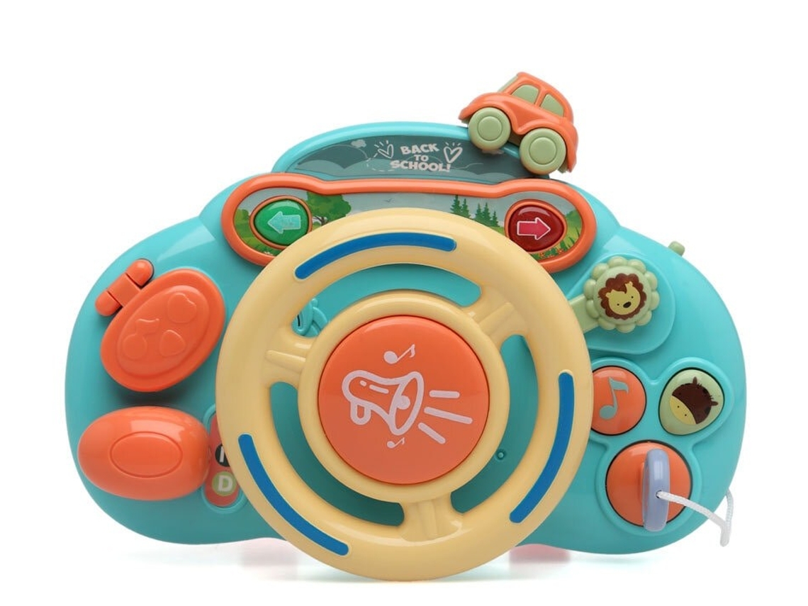 Gioco di Kiokids con leva del cambio, specchio, volante, clacson, chiave di avviamento, pulsante con suono