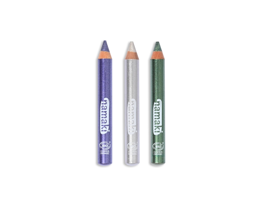 Informazioni sul prodotto – Trucco per bambini – Viola-Argento-Verde – 3 matite – Viola-Argento-Verde