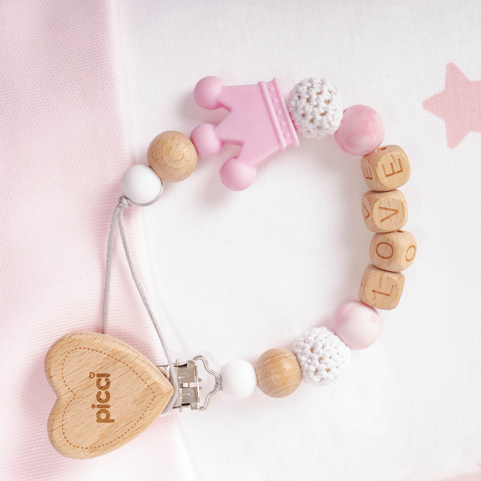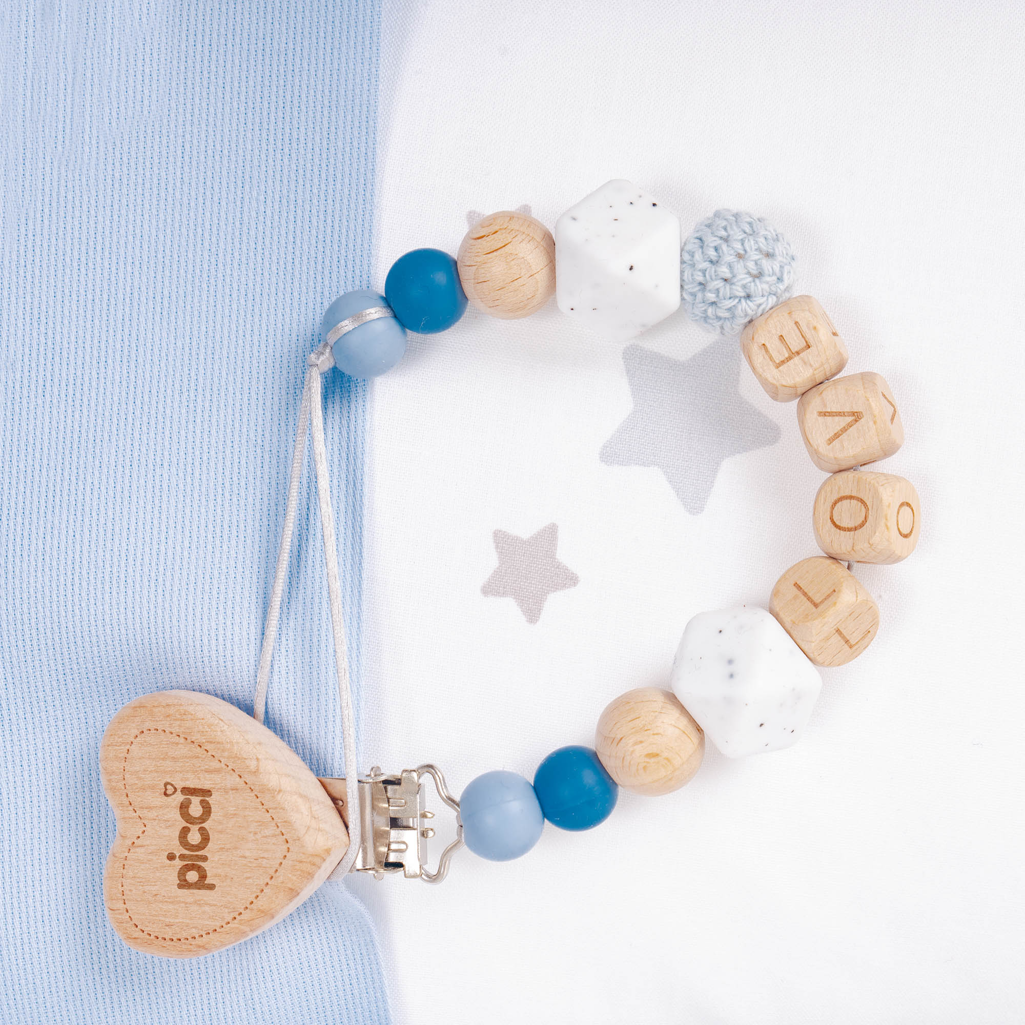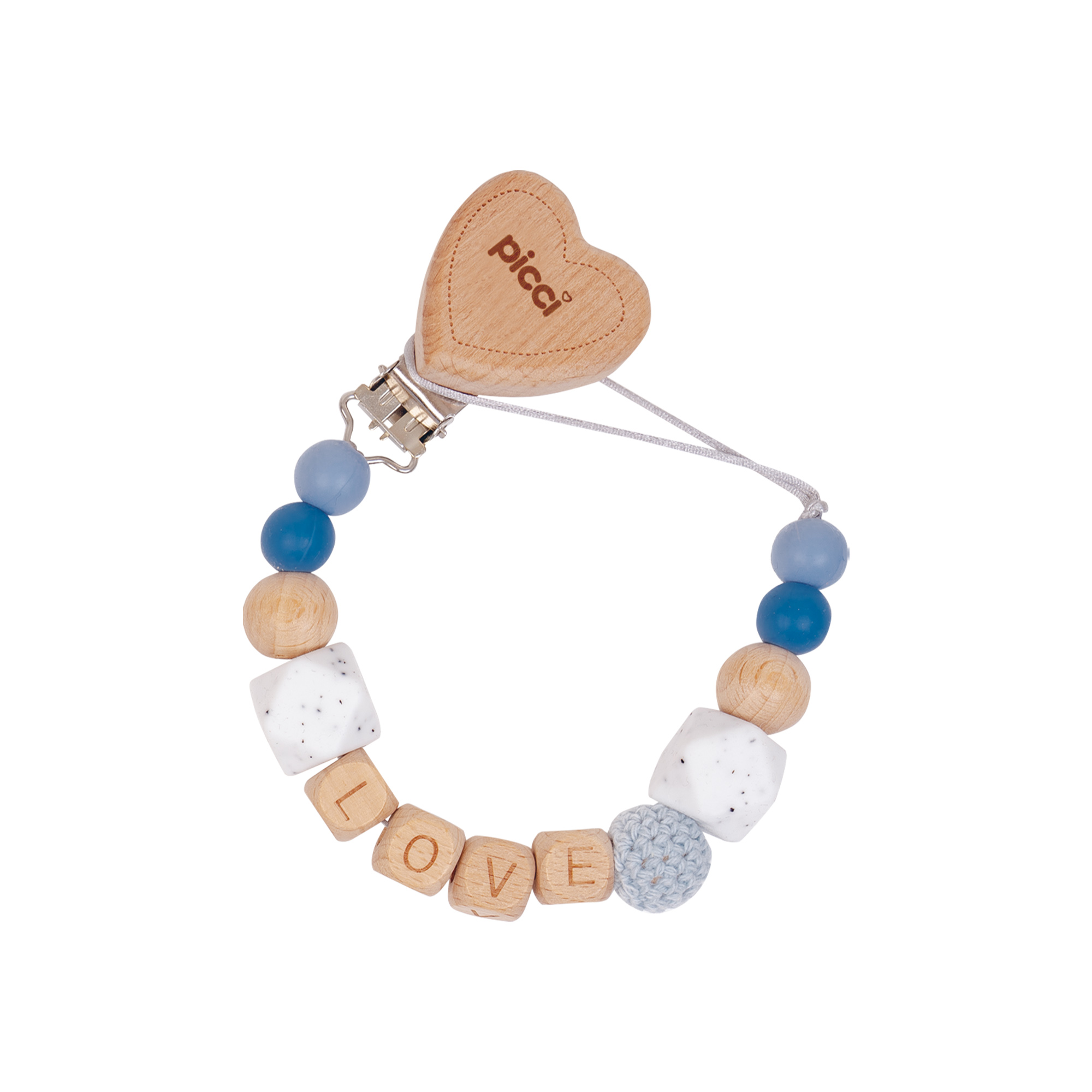 Le collane dentizione e i portaciucci sono realizzati in morbido silicone e legno non trattato, materiali che faranno provare al bambino le prime esperienze sensoriali.