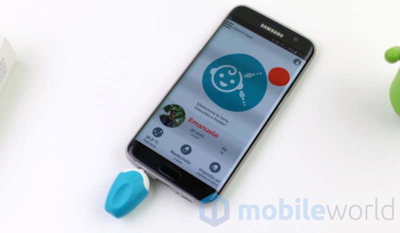 Appena effettuato l’accesso ci verrà chiesto di collegare il dispositivo che, una volta identificato, ci permetterà di effettuare le misurazioni. Dalla schermata principale dell’app si ha la possibilità di effettuare una misurazione dalla fronte o dall’orecchio. Naturalmente quella tramite orecchio sarà più precisa di quella tramite la fronte che può essere influenzata da fattori come sudorazione o trucco. Per la misurazione della temperatura tramite canale uditivo bisognerà togliere il “tappo” in silicone in modo da inserire il termometro nell’orecchio; tappo che sarà invece indispensabile per effettuare una misurazione tramite la fronte.