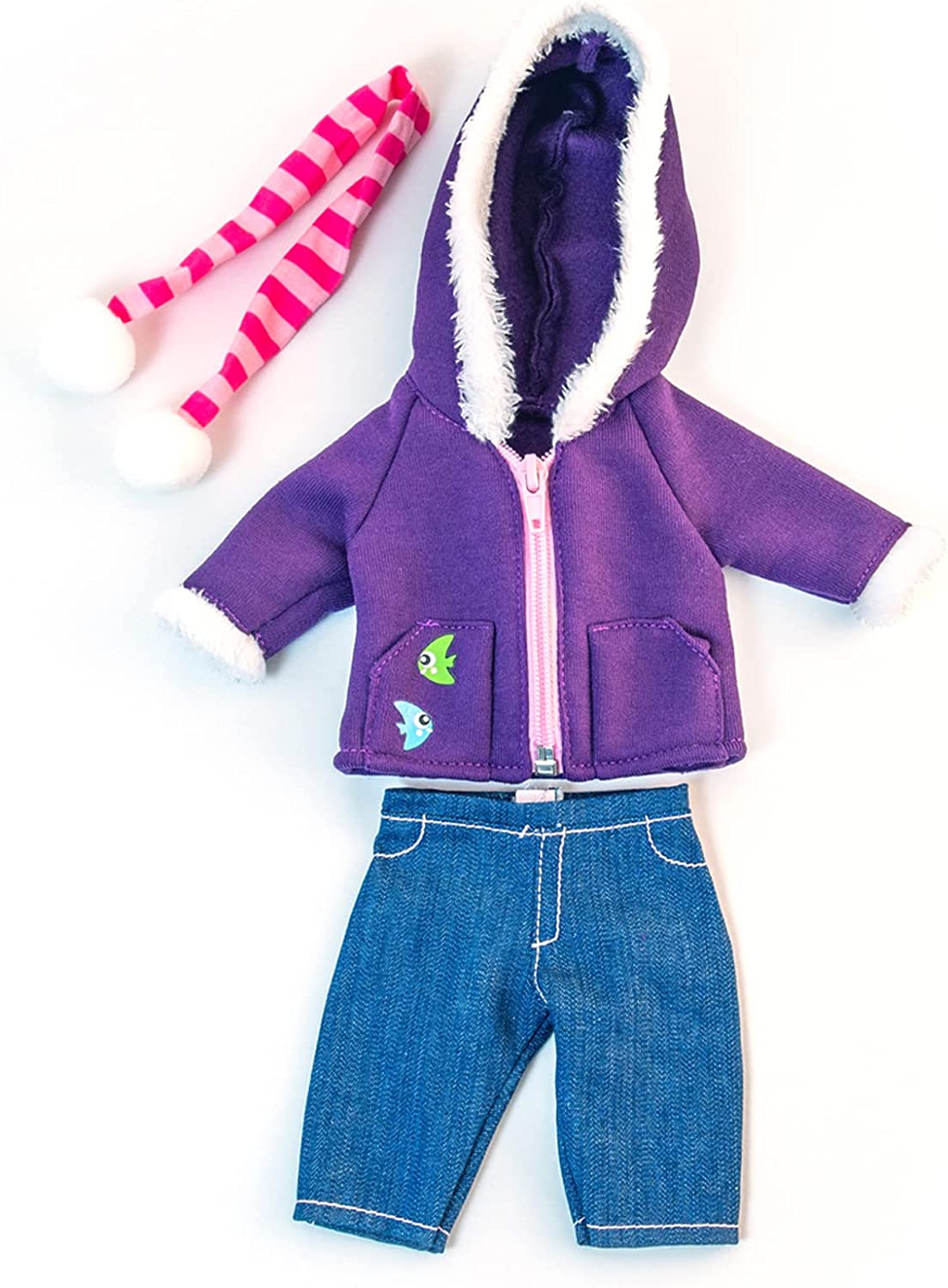 MINILAND VESTITO VIOLA CON JEANS PER BAMBOLA 32 CM.