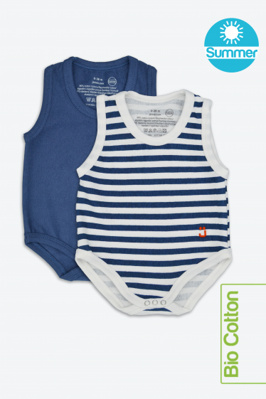 BODY 0-36 MESI J BIMBI SUMMER SMANICATI BIPACK TINTA UNITA + RIGHE